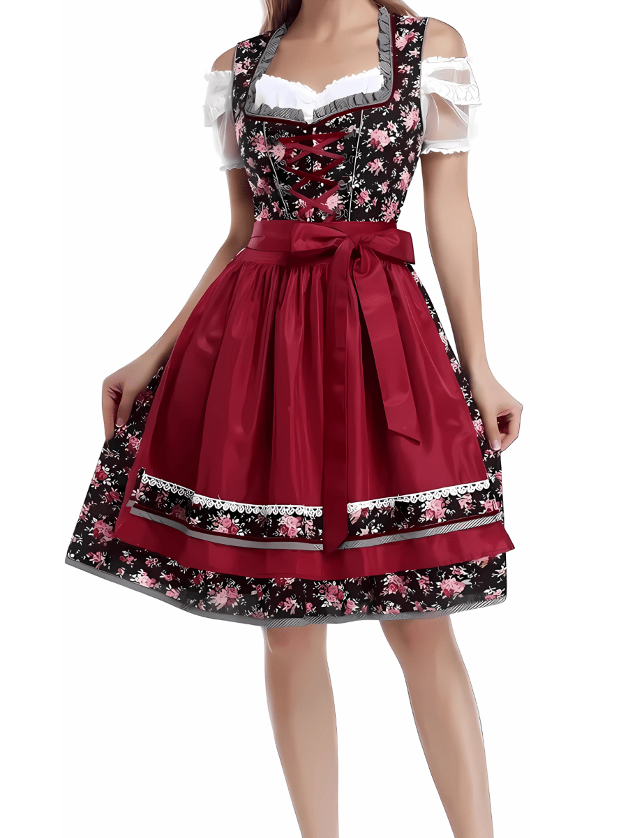 Klassiek design | Aansluitende top | Wijde rok | Bijpassende schort | Feestelijke charme