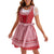Deze dirndljurk kan worden gestyled met traditionele accessoires, zoals een bloemenkroon, of gecombineerd met comfortabele schoenen voor een complete Oktoberfest-look.