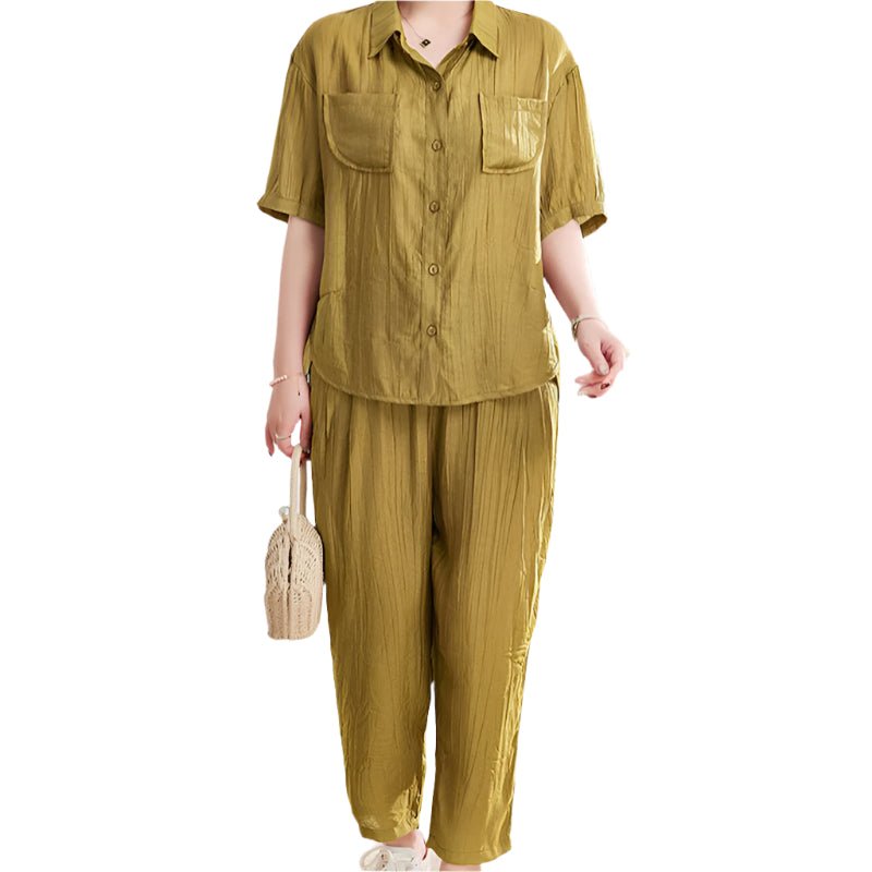 Type: Liesbetha Casual Effen Kleur Korte Mouw Shirt & Enkellange Broek 2 Stukken Set